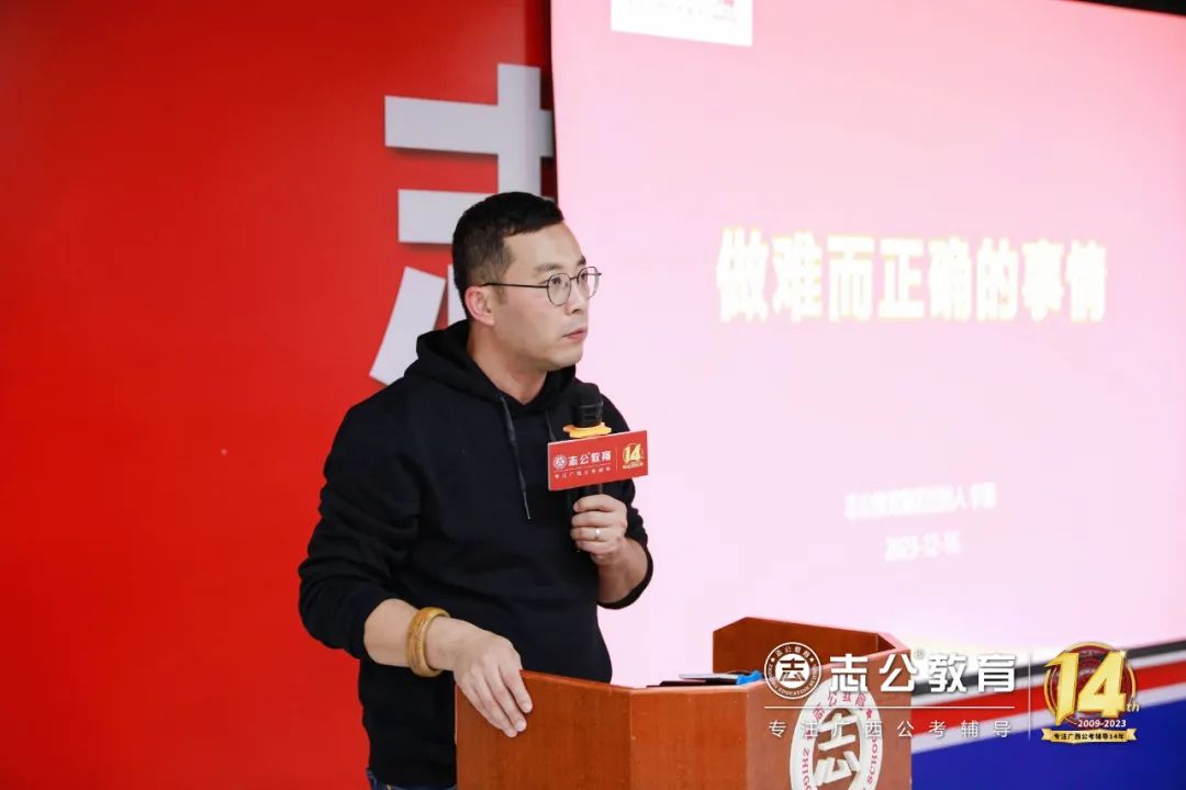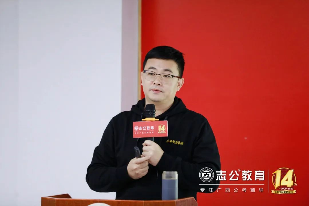 16日上午9點許,董事長李勇發(fā)表致辭,他認為:“聚焦是一種力量”,對于志公教育而言,聚焦就是專注廣西公考輔導(dǎo)。