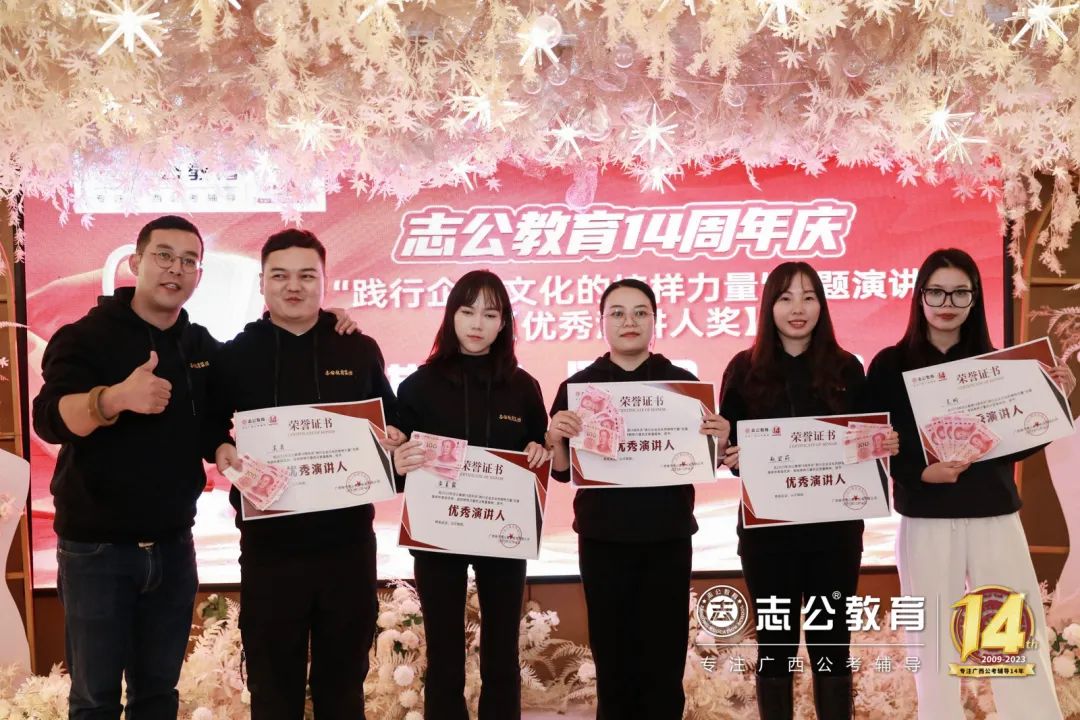 16日晚上,全體員工齊聚一堂,開始了頒獎儀式,感謝各位志公人為志公教育的付出。頒獎的項目有志公教育14周年慶舉辦的主題演講比賽和短視頻大賽。激動的心,顫抖的手,努力有了回報,獲獎選手拿著獎金,喜悅之情溢于言表。大家也都用掌聲來表達對他們的祝福。
