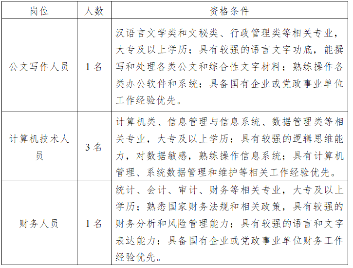 因工作需要,欽州市住房保障中心現(xiàn)面向社會公開招聘公文寫作人員、計算機技術人員、財務人員等崗位共5人,聘用后安排到欽州市住房保障中心相關股室工作,現(xiàn)將有關招聘事項公布如下: