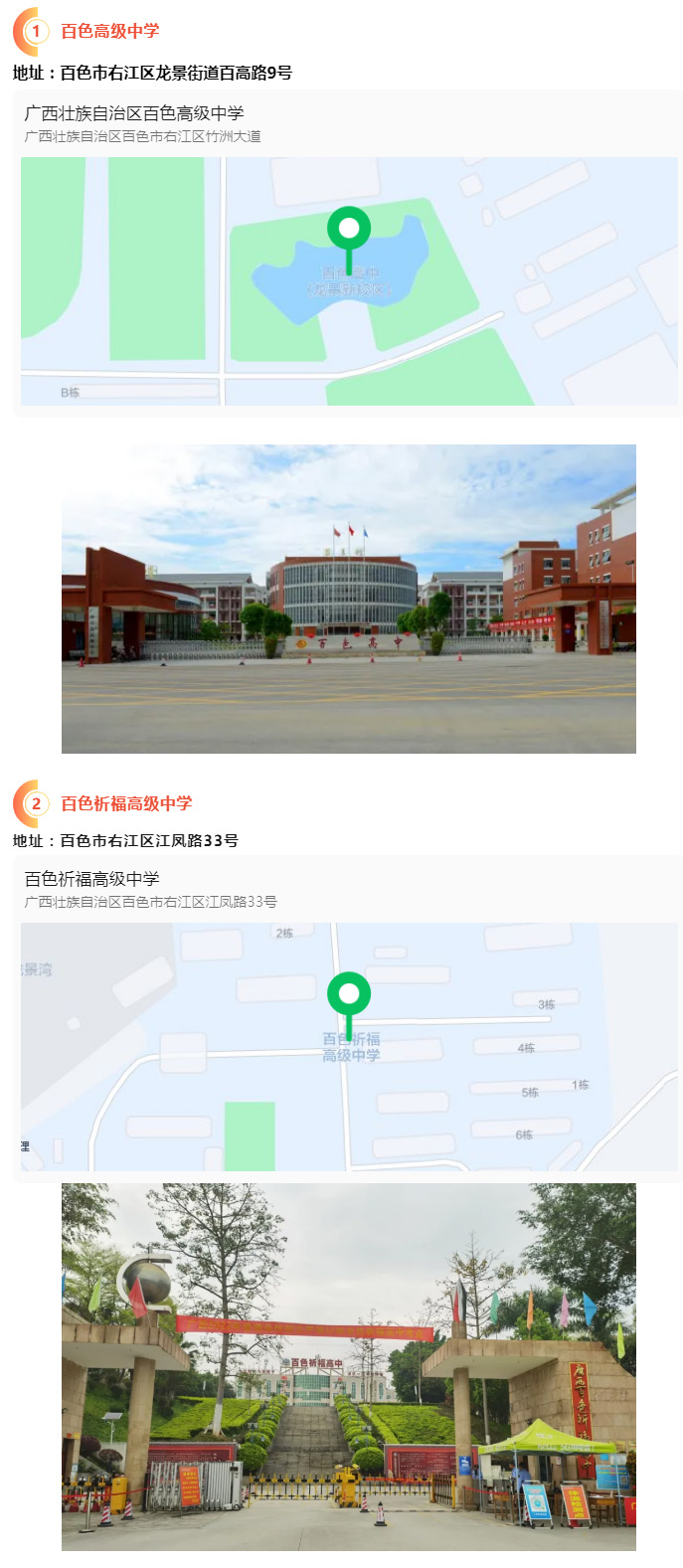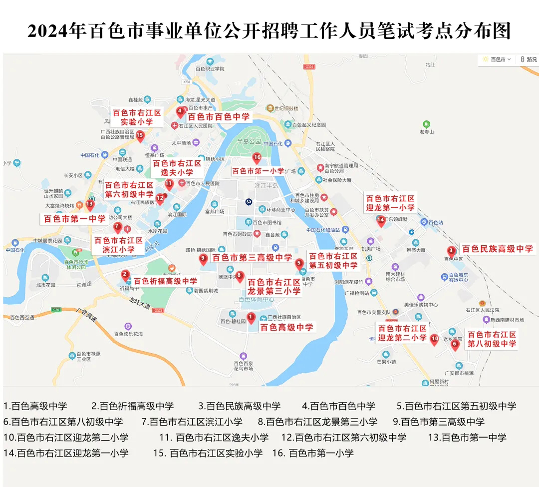 2.請(qǐng)?zhí)崆笆煜た键c(diǎn)地址,做好路線、住宿的安排。本次考試參考人數(shù)較多,考點(diǎn)分布分散,建議考生考前實(shí)地察看考點(diǎn),確認(rèn)考點(diǎn)入口位置,防止走錯(cuò)考點(diǎn)。請(qǐng)充分考慮考點(diǎn)周邊交通通行情況和停車(chē)場(chǎng)地容量,合理安排出行方式,預(yù)留充足時(shí)間,確??荚嚠?dāng)天按時(shí)到達(dá)。另外,考試期間百色市及各考點(diǎn)學(xué)校周邊的住宿比較緊張,請(qǐng)?zhí)崆邦A(yù)定。