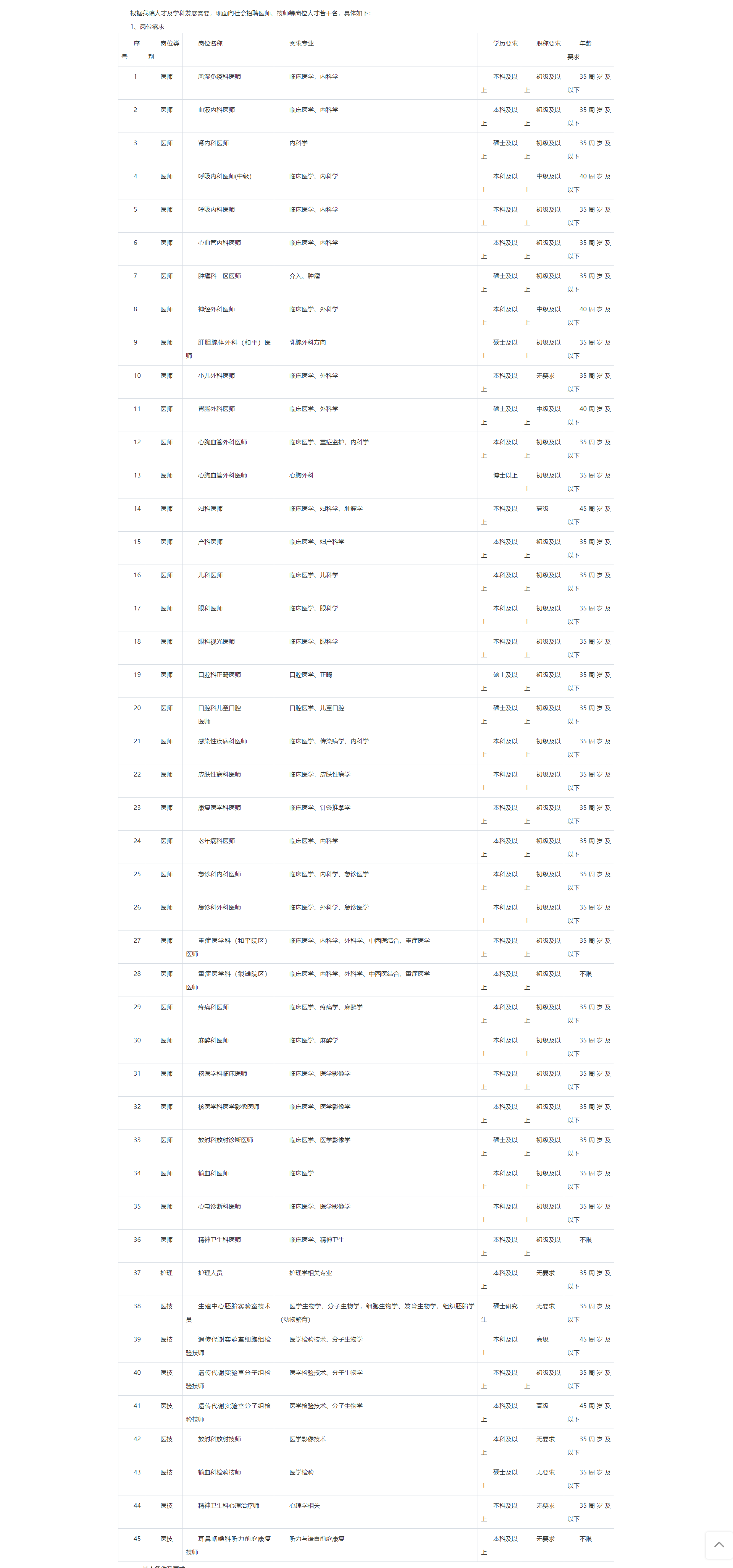 根據(jù)我院人才及學科發(fā)展需要,現(xiàn)面向社會招聘醫(yī)師、技師等崗位人才若干名,具體如下: