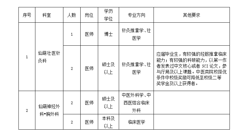 (2)博士:長期招聘(醫(yī)院將根據(jù)報(bào)名情況分批次安排面試,具體以醫(yī)院通知為準(zhǔn))