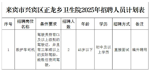 原文標題:來賓市興賓區(qū)正龍鄉(xiāng)衛(wèi)生院2025年公開招聘編外人員公告