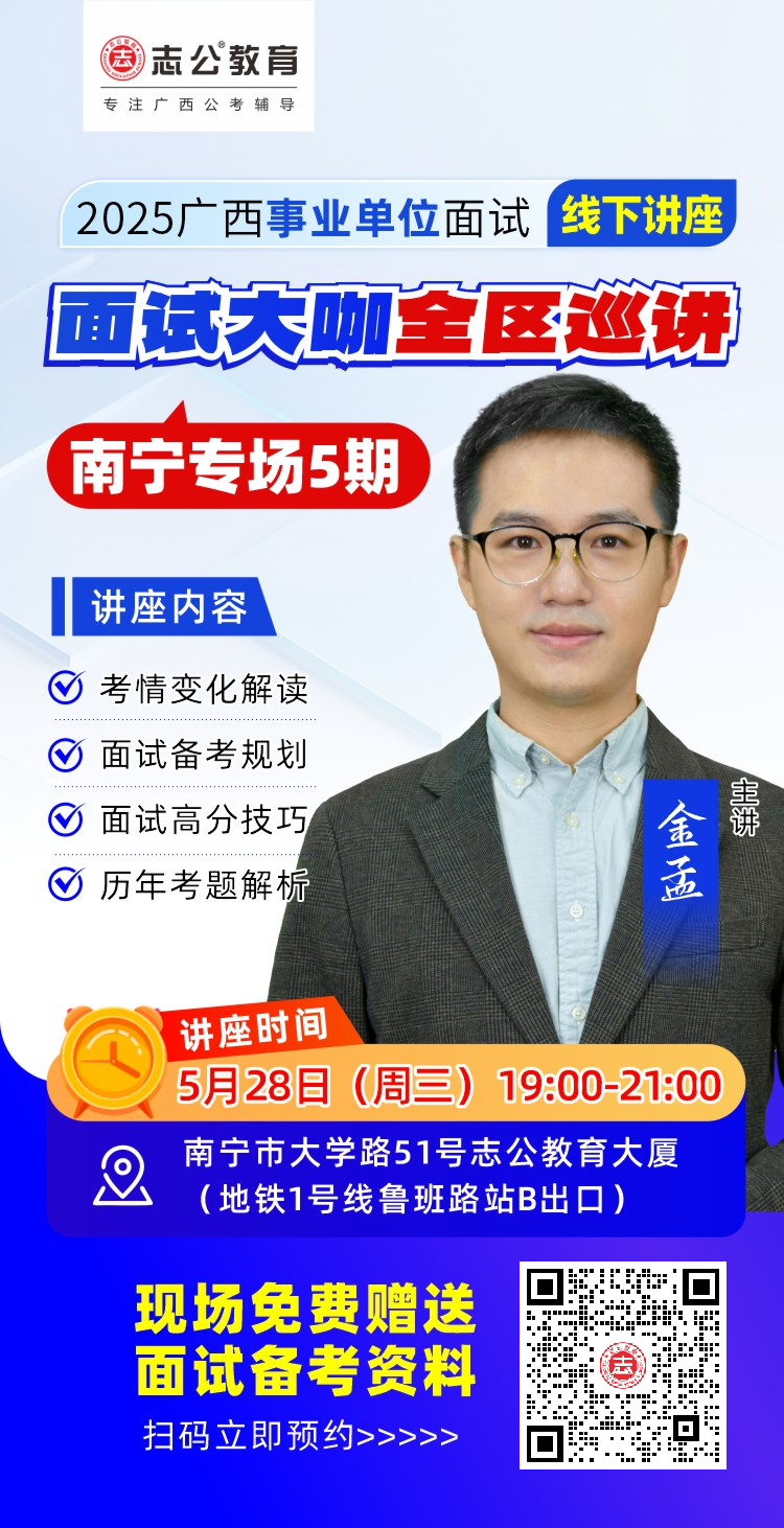 原文標(biāo)題:李勇教你贏面試!2025廣西事業(yè)單位面試線下巡講南寧專場今天等你來!