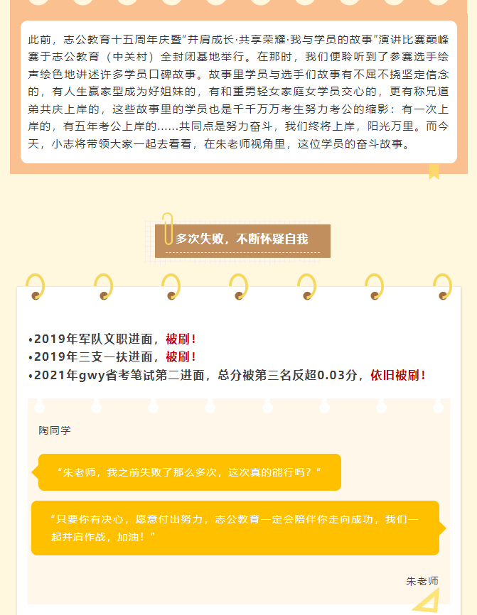 他成功上岸后,滿懷感激地給我們志公教育全體老師送來了錦旗。作為他的報(bào)班老師,我很欣慰看到他的努力得到了回報(bào)。他的勵(lì)志奮斗上岸故事也讓我深受鼓舞,讓我深刻認(rèn)識到,只要有堅(jiān)定的目標(biāo),持之以恒的努力,善于借鑒他人成功的經(jīng)驗(yàn),我們也能在工作中取得更多的成就與進(jìn)步!幫助更多學(xué)員實(shí)現(xiàn)他們的夢想!向?qū)W員學(xué)習(xí),也向所有致力于努力備考奮斗的學(xué)員們致敬!