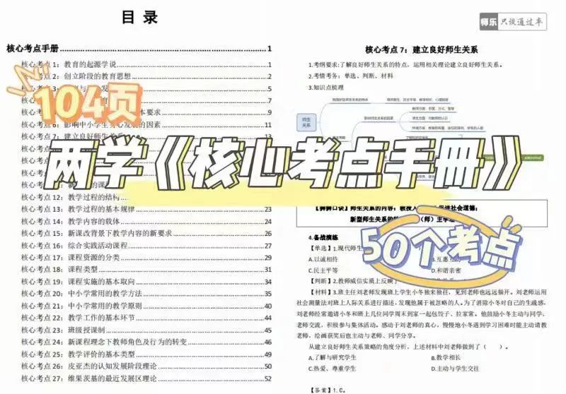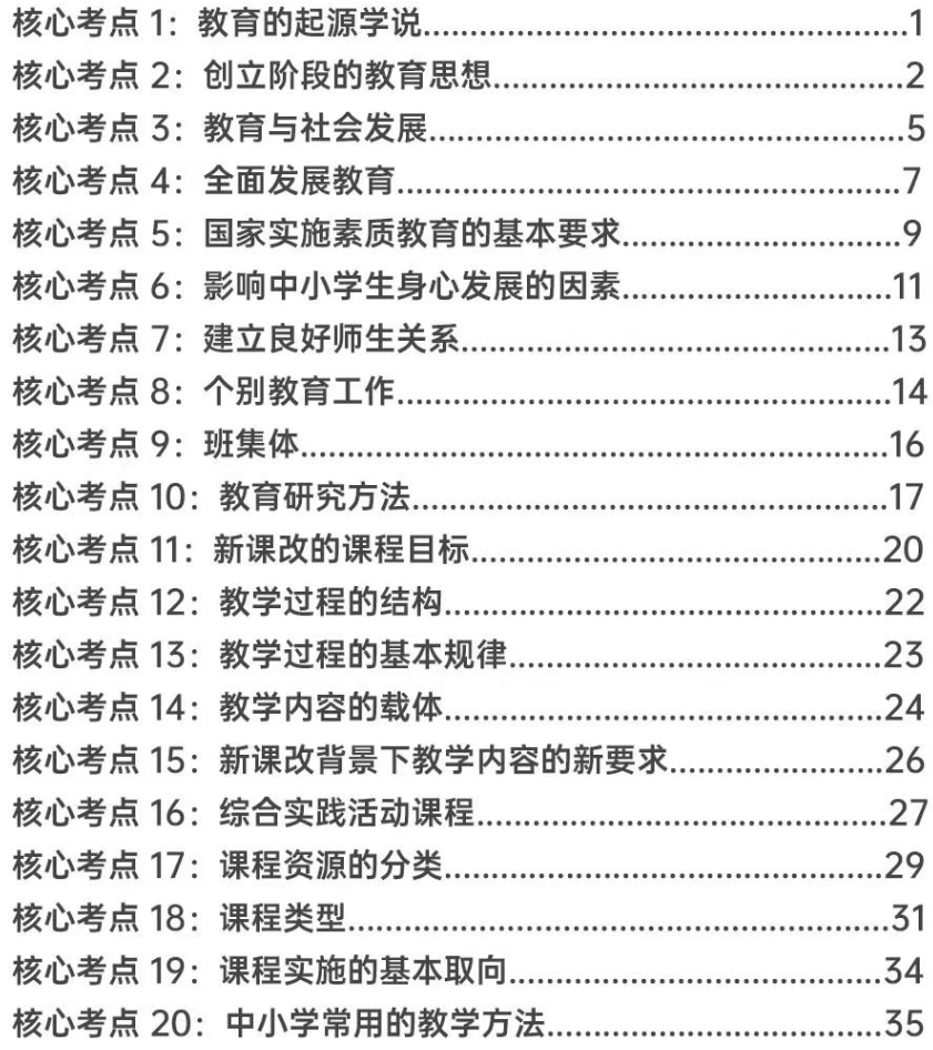 匹配考綱要求,精選50個核心考點:銘師組團精研,基于考綱收錄《教育學與教學法基礎(chǔ)知識》《教育心理學與德育工作基礎(chǔ)知識》核心考點,重點突出,幫助考生學習記憶。