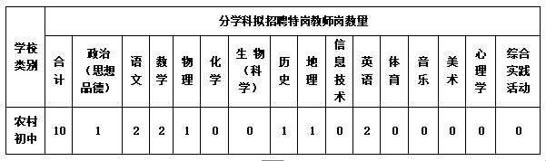 德??h2025年計劃招聘初中特崗教師10名,具體科目計劃招聘人數(shù)詳見下表: