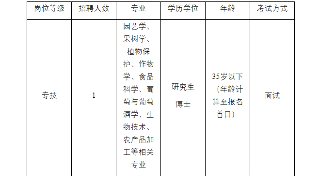 (二)園藝學、果樹學、植物保護、作物學、食品科學、葡萄與葡萄酒學、生物技術、農產品加工等相關專業(yè)。