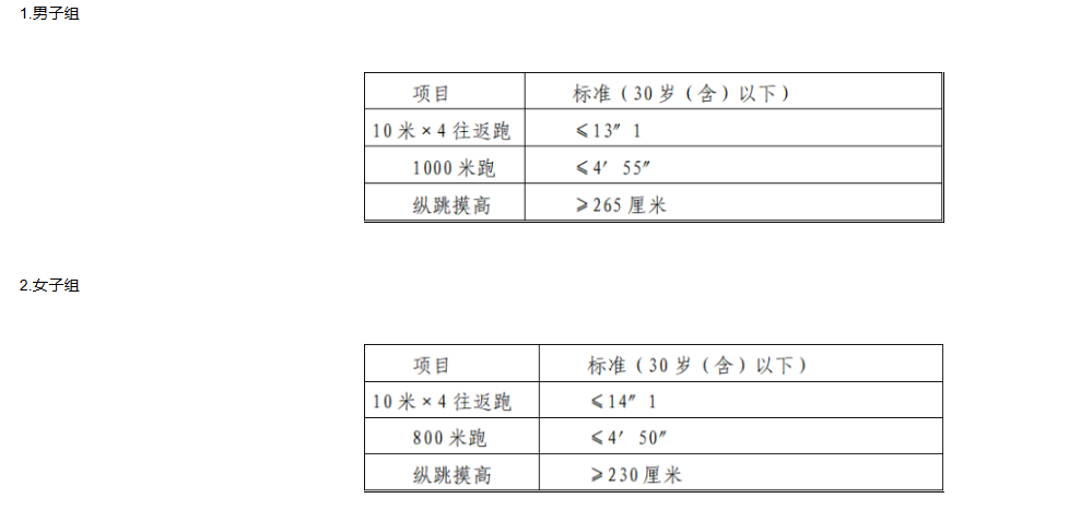 體能測(cè)評(píng)的標(biāo)準(zhǔn),參照《關(guān)于印發(fā)公安機(jī)關(guān)錄用人民警察體能測(cè)評(píng)項(xiàng)目和標(biāo)準(zhǔn)(暫行)的通知》(人社部發(fā)〔2011〕48號(hào))的標(biāo)準(zhǔn),具體如下: