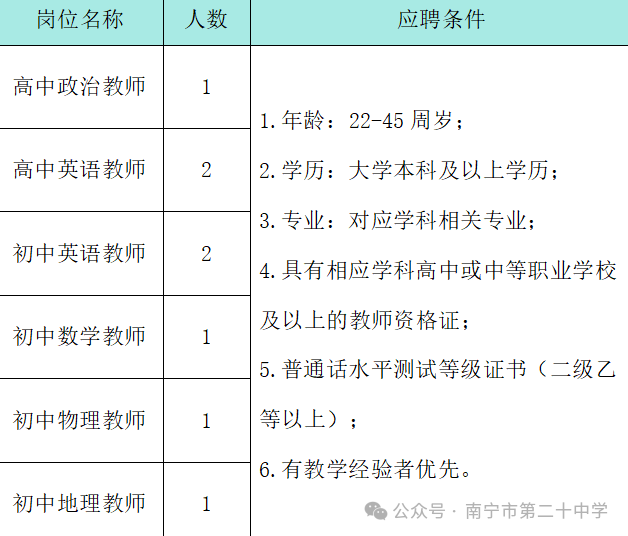 原文標(biāo)題:南寧市第二十中學(xué)教師招聘啟事