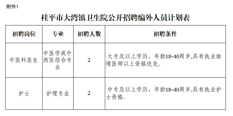 附件:1.桂平市大灣鎮(zhèn)衛(wèi)生院公開(kāi)招聘編外工作人員計(jì)劃表