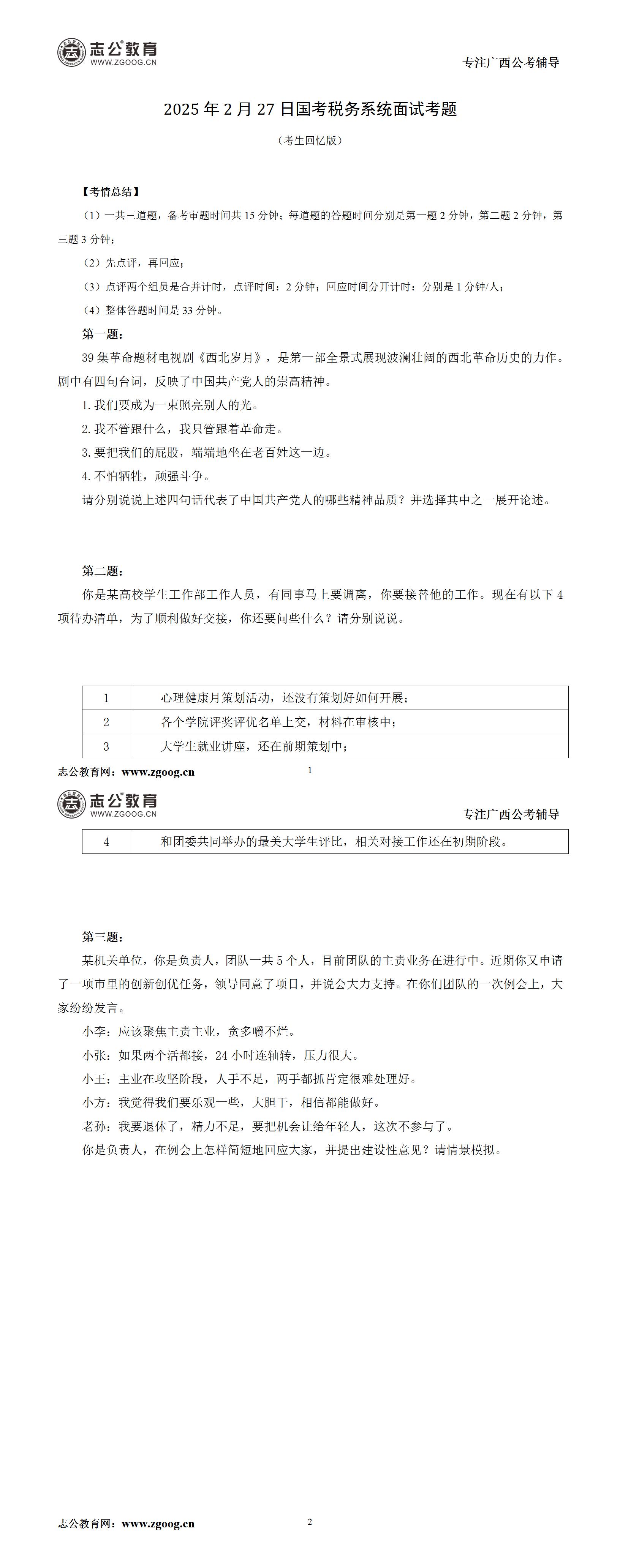 2025年國考稅務(wù)系統(tǒng)2月27日面試考題(考生回憶版)